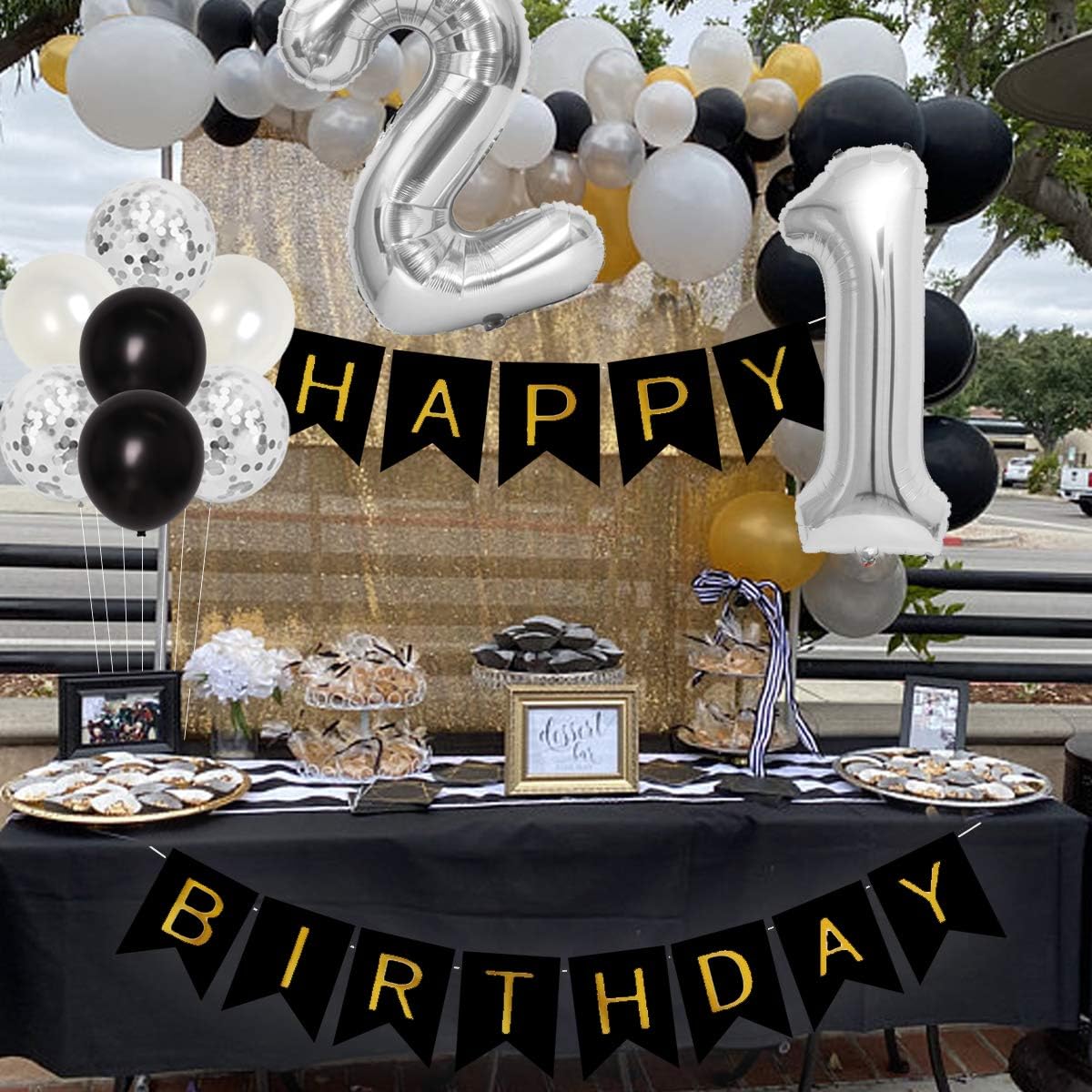 Foil Curtain Sash And Balloons Cake Topper 21st Birthday Decorations Silver And Black With Number Foil Balloons Event Party Supplies Home Kitchen from images-na.ssl-images-amazon.com 21st birthdays, one to hopefully remember. The 21st birthday decorations offered on sale can be fully customized to your event or party theme with a myriad of options available. A brilliant choice for a 21st birthday party, black and silver lends itself perfectly to a formal celebration of the original coming of age, and entrance into our collection of decorations in this popular theme includes banners, balloons, centrepieces, table confetti, party tableware, place cards, pom poms. 40th 21st 30th birthday decorations supplies personalised canvas party banner. 18th birthday party decorations kit black and silver birthday balloons led birthday string lights sliver 18 foil balloon happy birthday banner. 21st bday ideas 21st birthday decorations balloon decorations birthday surprise ideas 21 party party time 25th birthday birthday parties 30th. We heart parties is a community website to share easy party ideas. Posted ondecember 1, 2017 black and silver decoration for a 21st party 1000 × 1000.